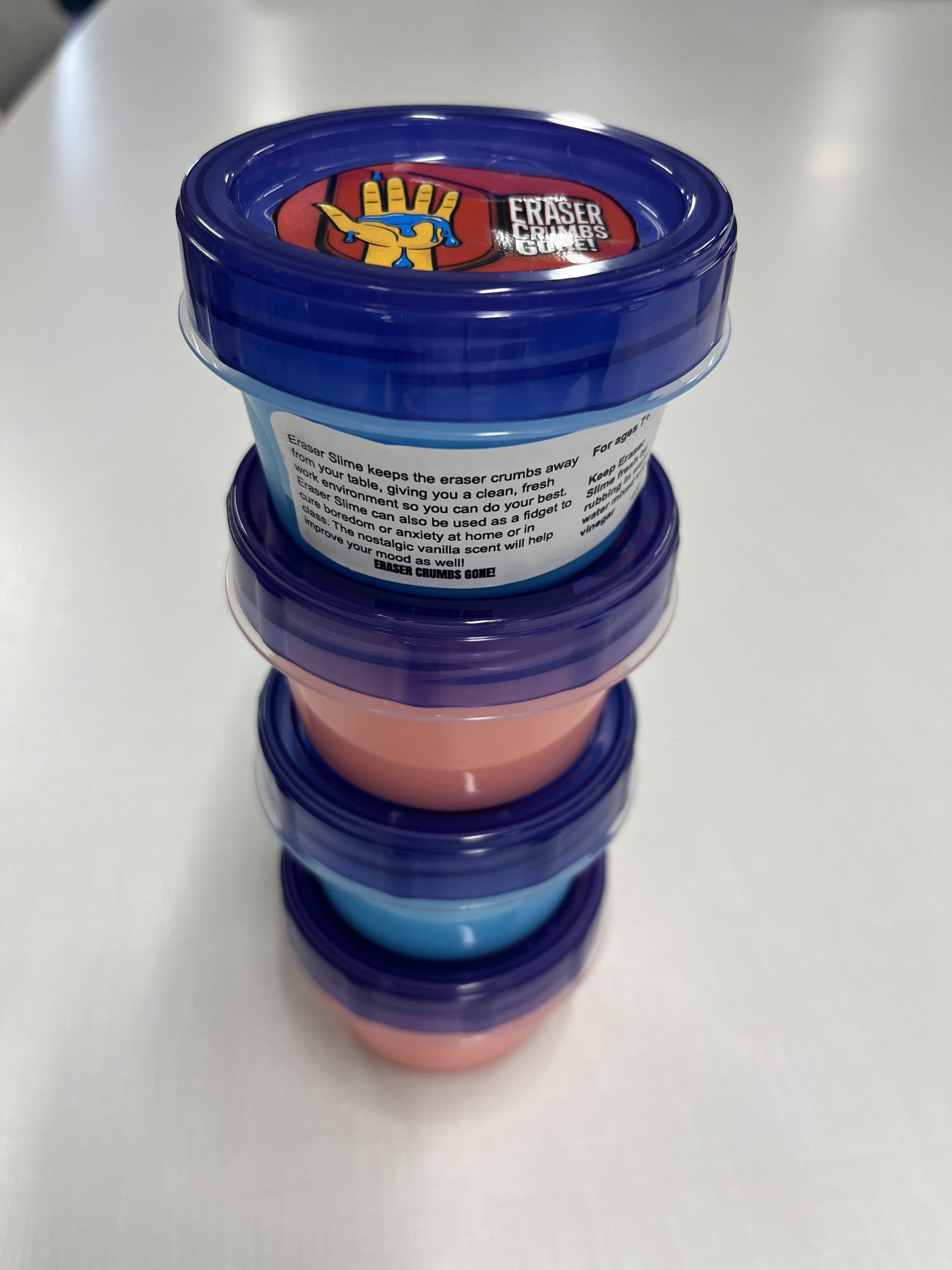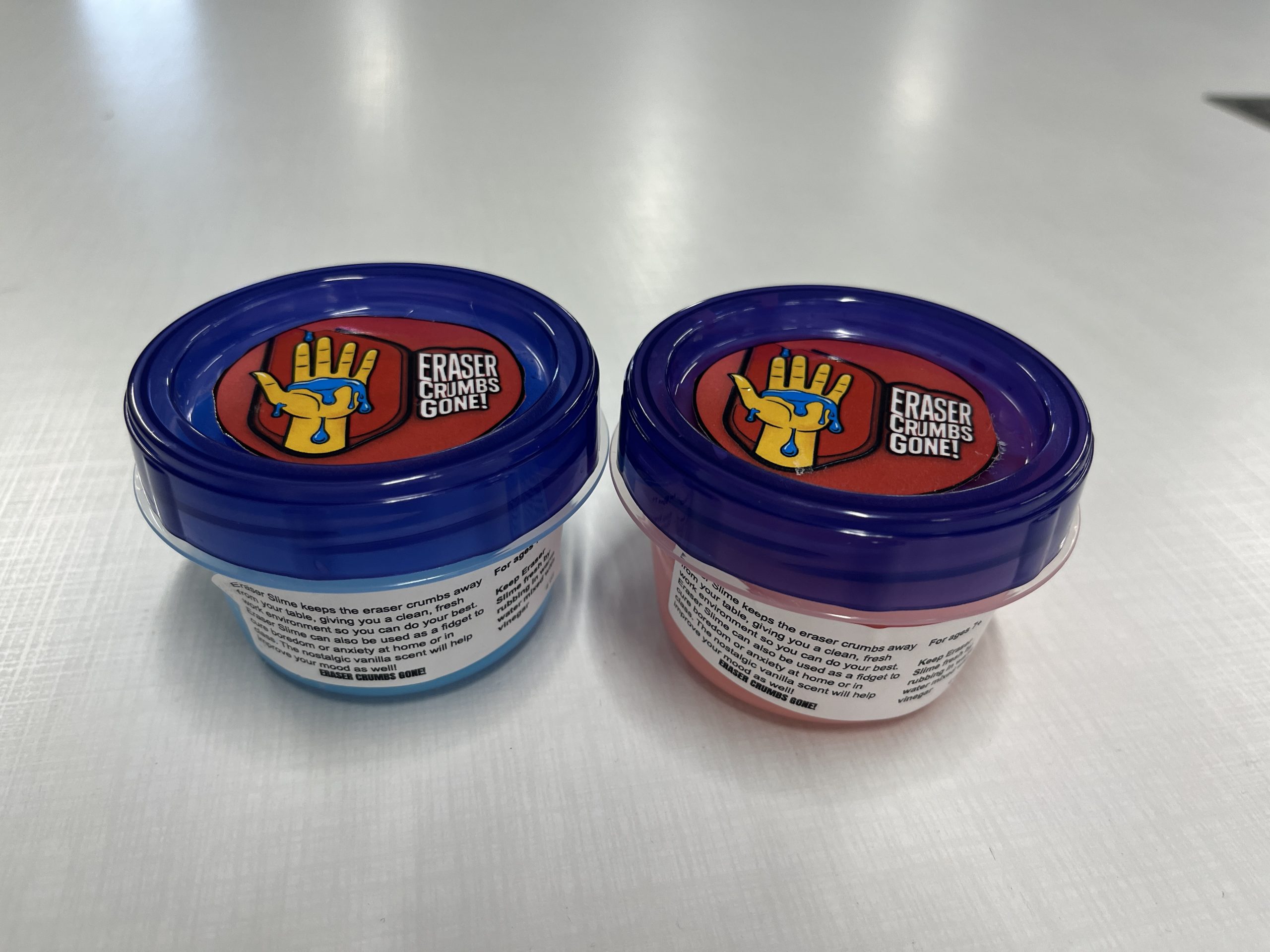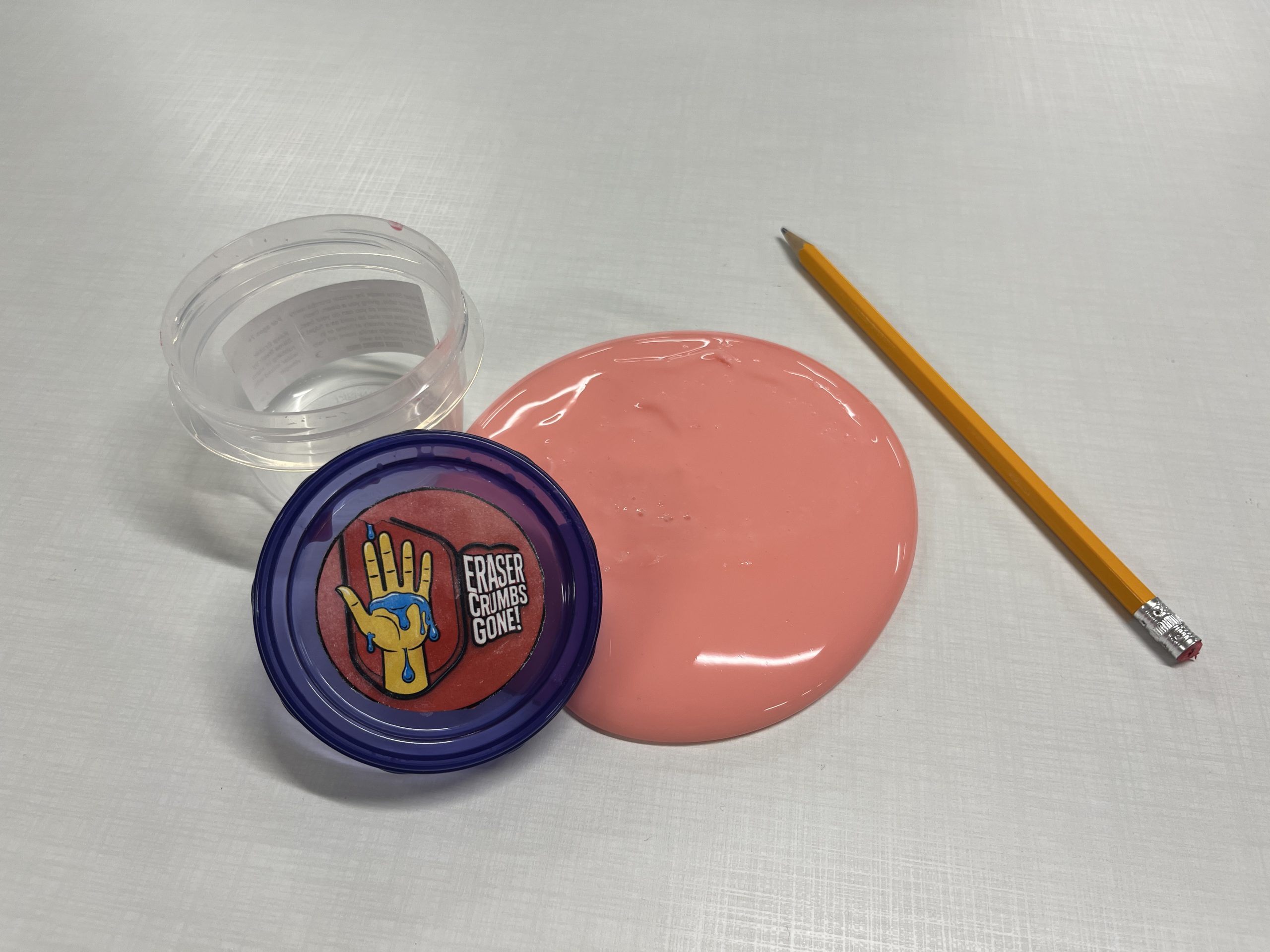 Eraser Slime keeps the eraser crumbs away from your table, giving you a clean, fresh work environment so you can do your best. Eraser Slime can also be used as a fidget to cure boredom or anxiety at home or in class. The nostalgic vanilla scent will help improve your mood as well!  Eraser crumbs gone!